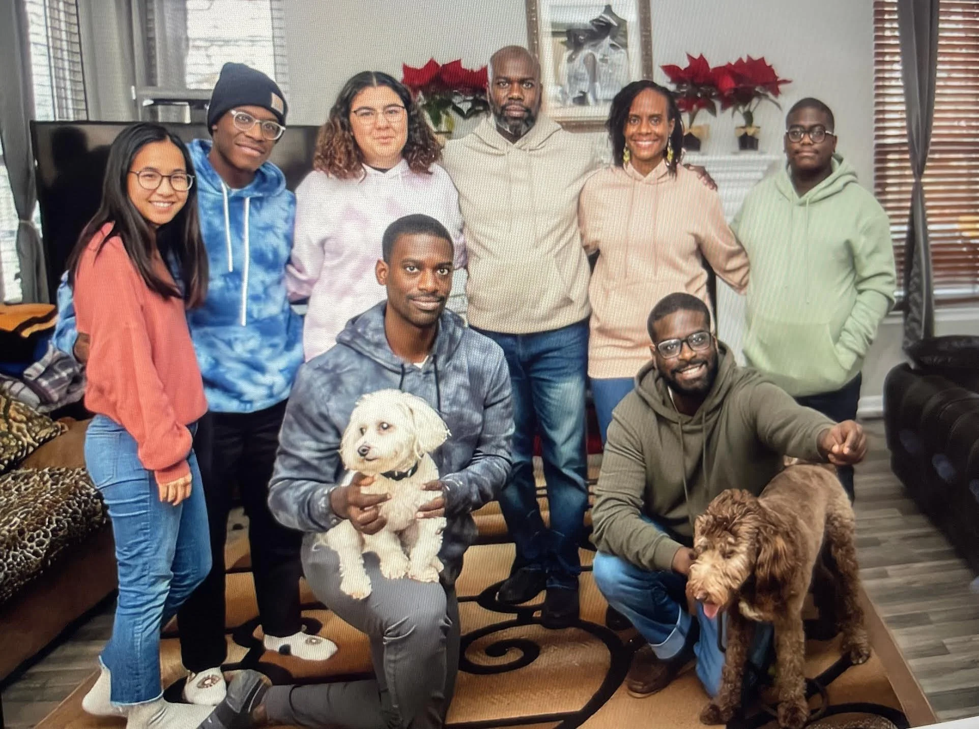 Abigail (daughter in law), Raul, Jasmine, Cory Sr., Me, Gabriel, Cory Jr., Arlo (grandpuppy), Joseph, Peace (four leg son!)